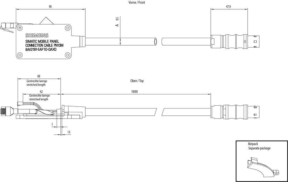 SIEMENS - SIMATIC HMI Cavo di collegamento 10 m per KTP Mobile 6AV21815AF100AX0