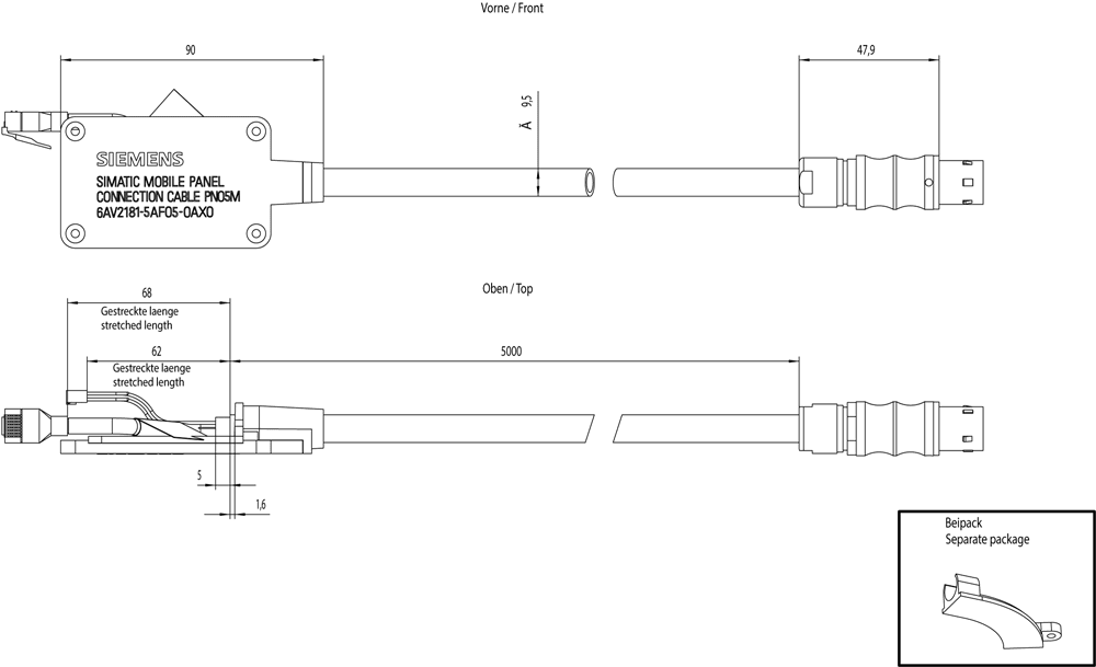 SIEMENS - SIMATIC HMI Cavo di collegamento 5 m per KTP Mobile 6AV21815AF050AX0