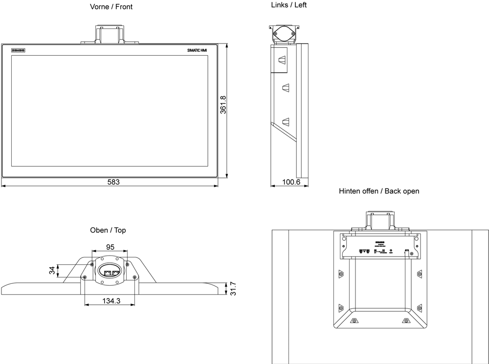 SIEMENS - SIMATIC HMI ITC1200 V3 PRO design standard braccio di sostegno con elemento di ampliamento 6AV66461BD120AA1