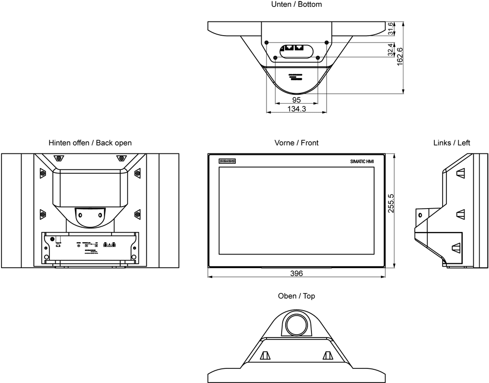 SIEMENS - SIMATIC HMI ITC1500 V3 PRO design standard braccio di sostegno con elemento di ampliamento