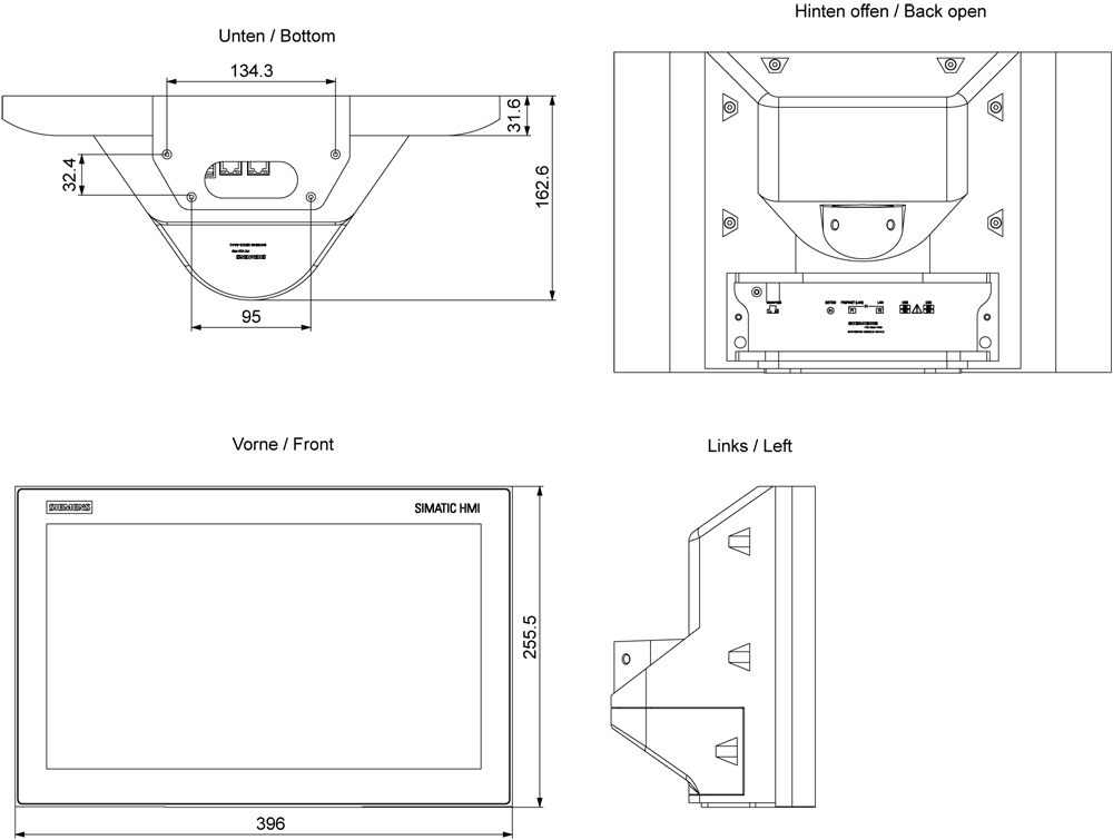 SIEMENS - SIMATIC HMI ITC1500 V3 PRO design standard braccio di sostegno con elemento di ampliamento 6AV66461BD150AA1