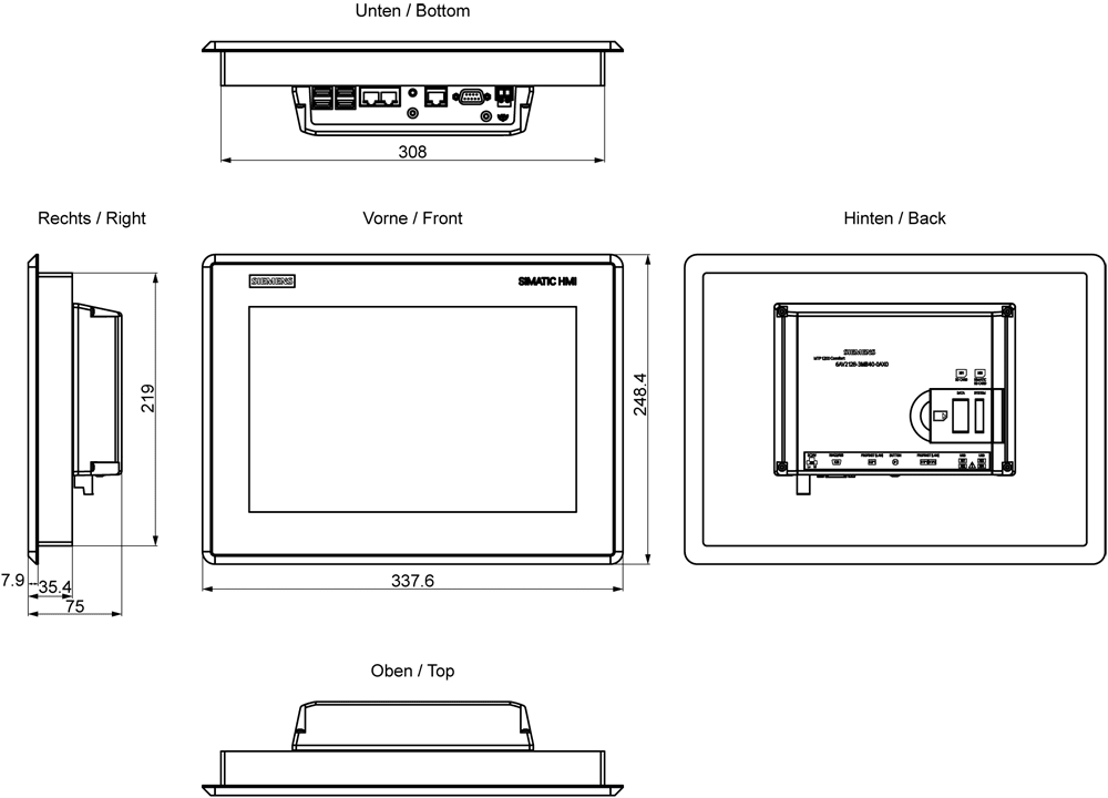 SIEMENS - SIMATIC HMI MTP1200 Unified Comfort Hygienic igienico IP69, FDA, protezione antischegge 6AV21283MB400AX0