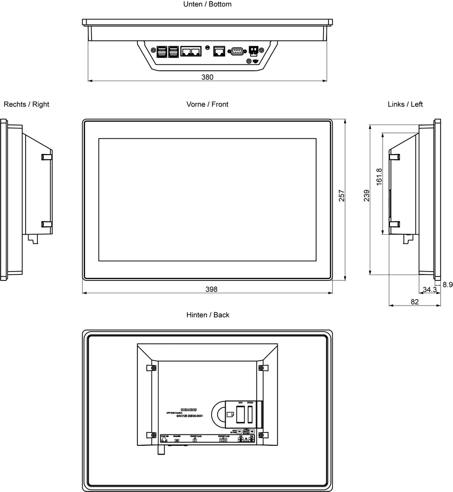SIEMENS - SIMATIC HMI MTP1500 Unified Comfort Frontale neutrale 6AV21283QB360AX1
