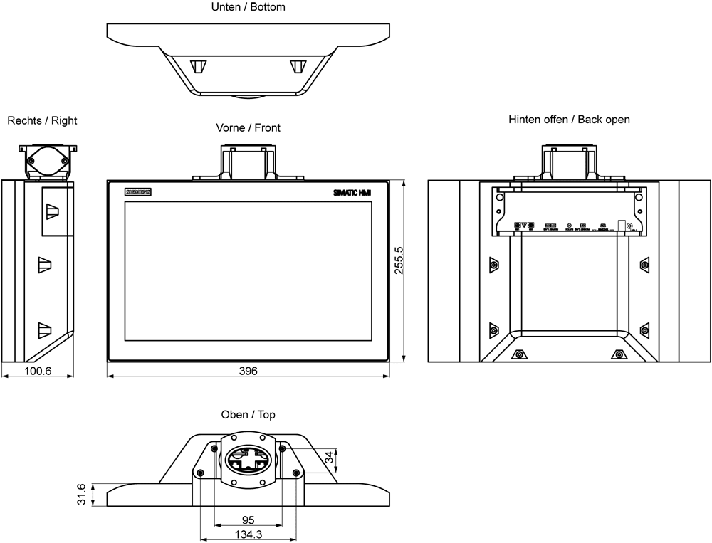 SIEMENS - SIMATIC HMI MTP1500 Unified Comfort PRO Predisposizione per braccio di sostegno senza elementi di ampliamento 6AV21283QB270AX0