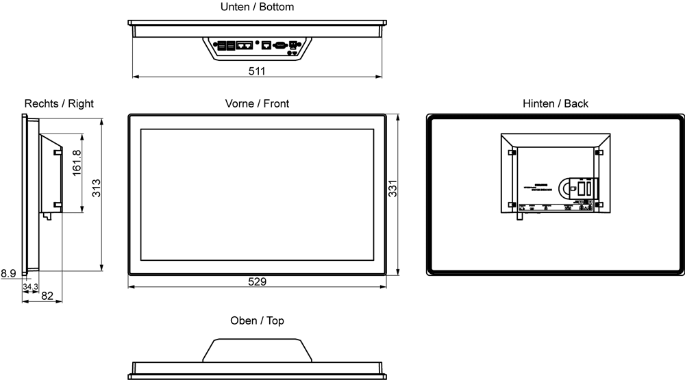 SIEMENS - SIMATIC HMI MTP2200 Unified Comfort Frontale neutrale 6AV21283XB360AX1