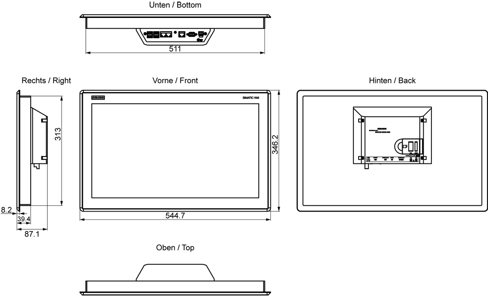 SIEMENS - SIMATIC HMI MTP2200 Unified Comfort Hygienic igienico IP69, FDA, protezione antischegge