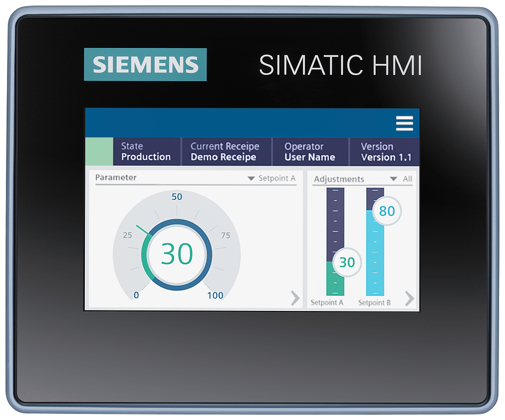 SIMATIC HMI MTP400, Unified Basic Panel, comando touch, display TFT 4" widescreen, 16 milioni di colori, interfaccia PROFINET, progettabile da WinCC Unified Basic V18 Upd. 3, comprende il software Open Source, che viene concesso gratuitamente, vedere Blu-Ray allegato I SIMATIC HMI Unified Basic Panels consentono di realizzare soluzioni di comando innovative basate sul nuovo software di visualizzazione SIMATIC WinCC Unified. Tutti gli apparecchi, nelle dimensioni da 4 a 12 pollici, sono dotati dello stesso numero di interfacce e del massimo comfort operativo grazie alla moderna tecnologia Multi-Touch. Inoltre il nuovo hardware offre una performance molto superiore per la visualizzazione. Le capacità limite del sistema sono state aumentate, in parte persino raddoppiate. Questo permette di realizzare applicazioni di dimensioni notevolmente maggiori rispetto a quelle realizzate finora su un sistema con Panel. Per garantire la sicurezza IT delle apparecchiature, Siemens ha scelto un sistema operativo proprietario e consente all'utente di disattivare le funzioni o le interfacce non richieste.