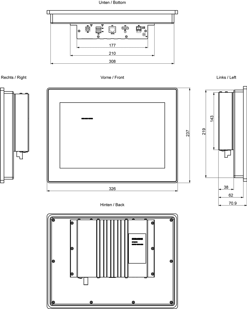 SIEMENS - SIMATIC IPC IFP1200 V2 12 Multi-Touch, extended, design neutrale