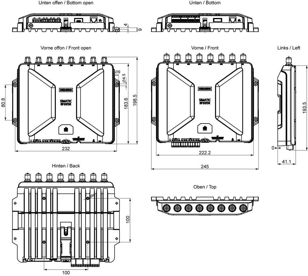 SIEMENS - SIMATIC RF695R ETSI, Ethernet RJ45, PoE, 8 antenne, senza accessori e antenne 6GT28117DD200AA0