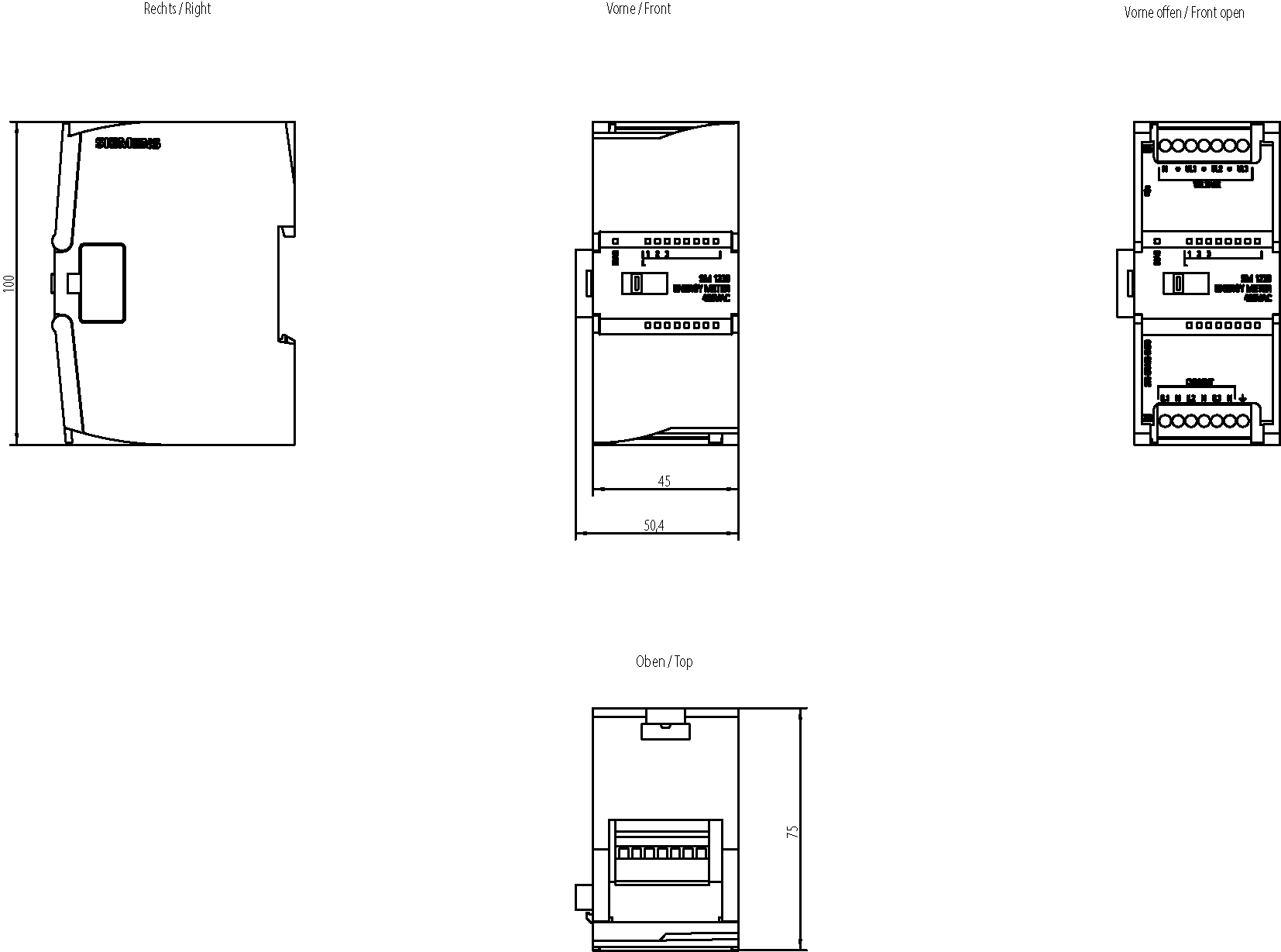 SIMATIC S7-1200, unità di ingressi analogici, SM 1238 Energy Meter 480V AC, modulo di misurazione dell’energia per l’acquisizione dei dati nelle reti monofase e trifase reti (TN, TT) fino a 480V AC; campo di corrente: 1A, 5A; rilevamento di tensione, corrente, angoli di fase, potenza, valori di energia, frequenze; diagnostica di canale SIMATIC S7-1200 Basic Controller - Flessibilità garantita da svariate opzioni di comunicazione. Il modulo di ampliamento SM 1238 Energy Meter 480VAC è previsto per il rilevamento di dati energetici in una stazione S7-1200. Esso acquisisce oltre 200 diversi valori elettrici di misura e di energia. I dati vengono elaborati direttamente nella CPU e possono essere visualizzati con un Basic Panel. Questo rende trasparente all'utente il fabbisogno di energia dei singoli componenti del suo impianto di produzione.