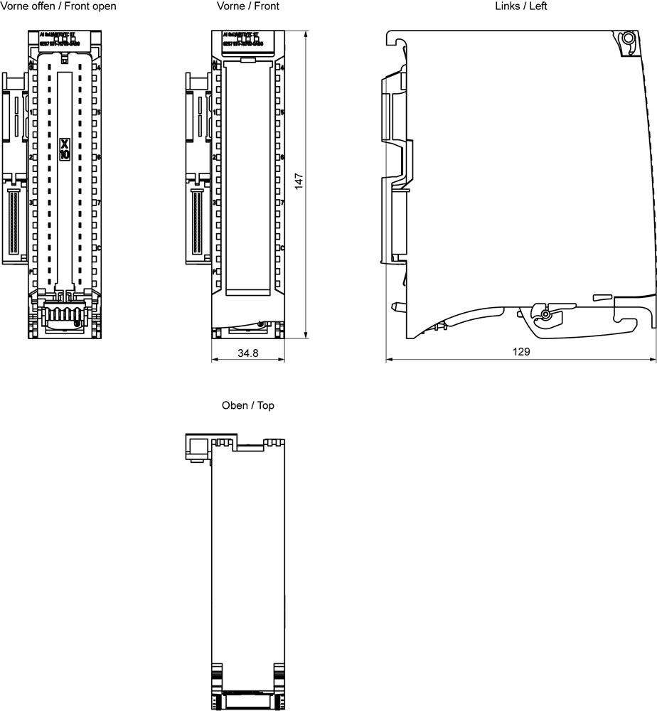 SIEMENS - SIMATIC S7-1500 AI 8 x U/I/RTD/TC ST 35 mm incl. elemento di alimentazione, staffa per schermo e morsetto per schermo 6ES75317KF000AB0