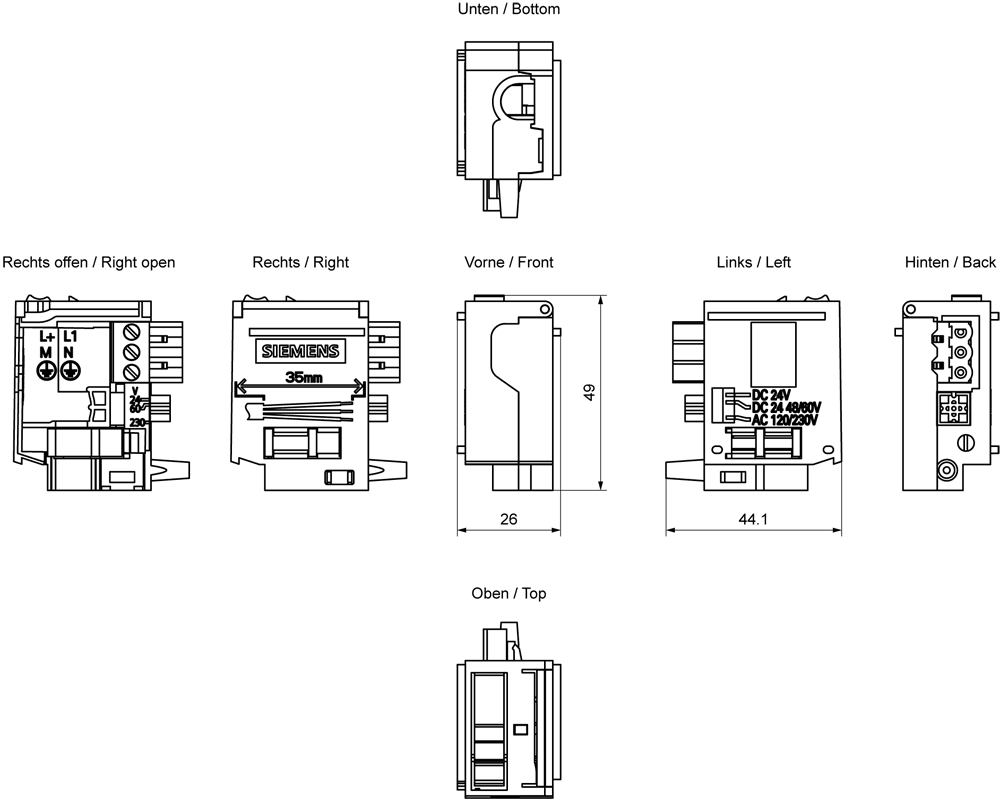 parte di ricambio SIMATIC S7-1500, connettore per modulo di alimentazione di corrente (PS) e moduli di alimentazione della corrente di carico (PM) 10 pezzi per unità d'imballo Pezzo di ricambio per S7-1500