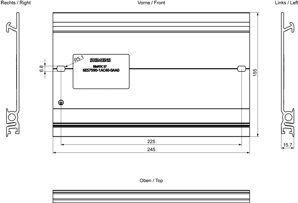 SIEMENS - SIMATIC S7-1500 Guida profilata 245 mm (9,6) incl. vite di messa a terra 6ES75901AC400AA0