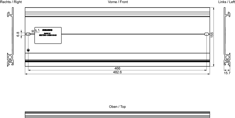 SIEMENS - SIMATIC S7-1500 Guida profilata 482 mm (19) incl. vite di messa a terra 6ES75901AE800AA0