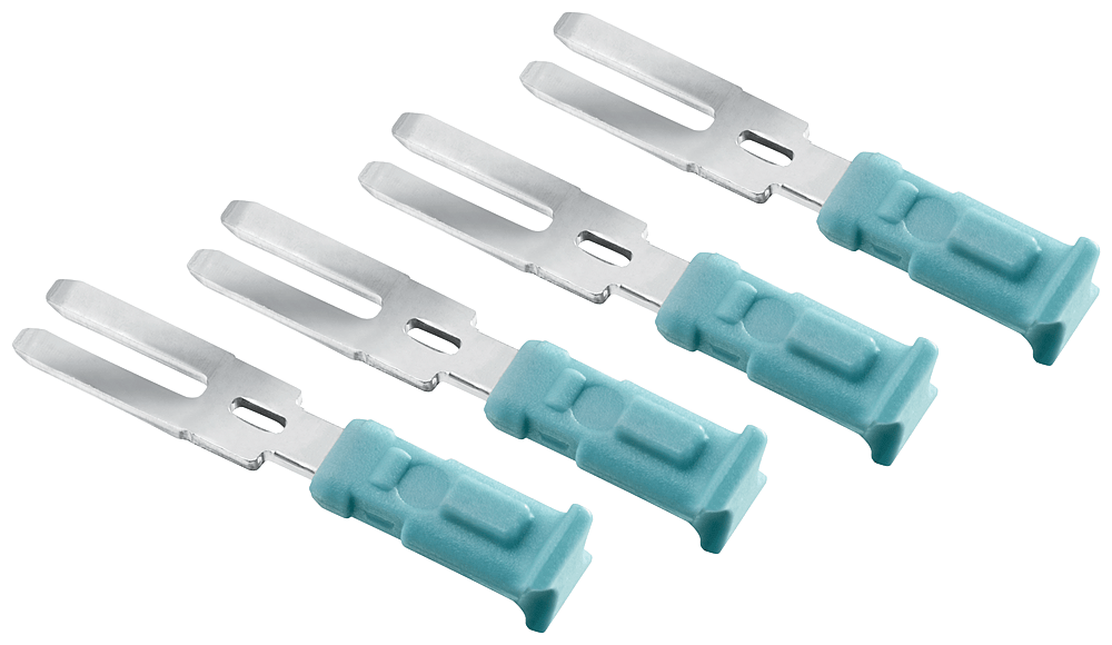 SIMATIC S7-1500, parte di ricambio ponticelli di potenziale per connettore frontale per larghezza 35 mm unità I/O; utilizzabili per tutte le unità DC 24V; 20 pezzi per unità d'imballo nota: non adatto per 230V, non adatto per unità analogiche Accessori per moduli S7-1500