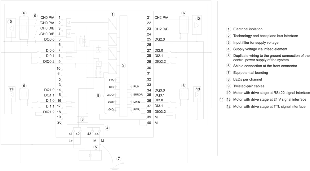SIMATIC S7-1500, TM PTO 4 unità d'interfaccia per azionamenti passo-passo 4 canali Pulse Train Output PTO: 24 V, RS-422, 5V, 2 DI, 1 DQ 24VDC per canale SIMATIC ET 200MP è un sistema di periferia modulare e scalabile per impiego universale in IP20 e offre gli stessi vantaggi di sistema dell'S7-1500. Esso consente tempi di ciclo del bus minimi e tempi di reazione assai rapidi anche in caso di grandi strutture d'insieme. Il sistema di periferia decentrata è particolarmente facile da montare, da cablare e da mettere in servizio. Grazie alla struttura scalabile è possibile personalizzare la stazione periferica esattamente in base alle necessità sul posto. Le unità tecnologiche offrono preelaborazione dei segnali a livello di hardware per conteggio rapido, misura esatta, rilevamento di posizione e modulazione a larghezza di impulsi per una varietà di trasduttori e attuatori nonché per il comando di azionamenti con motori passo-passo e di servoazionamenti tramite interfaccia PTI.