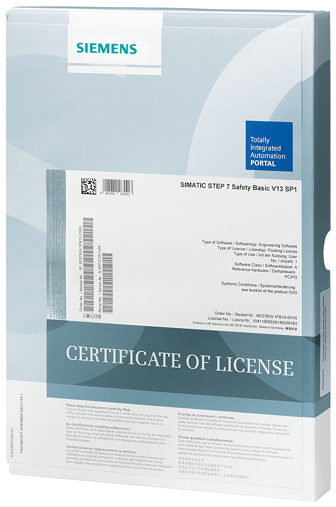 SIEMENS - SIMATIC S7 S7 Distributed Safety V5.4 Floating License 6ES78331FC020YA5