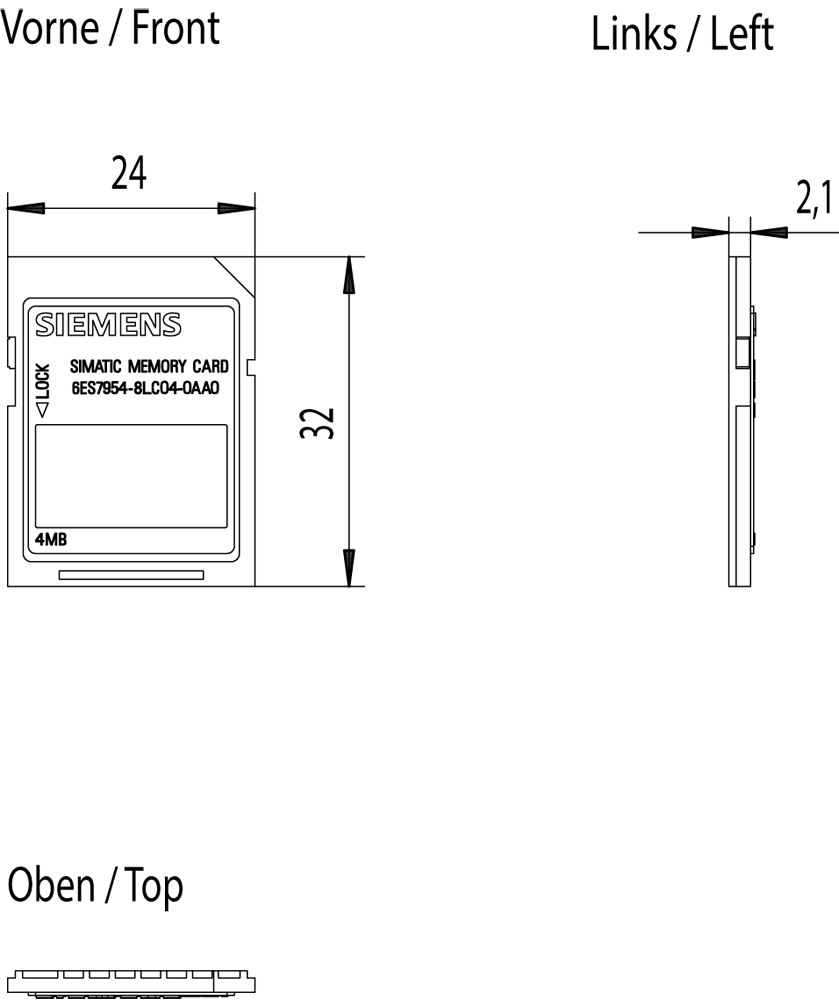 SIMATIC S7, Memory Card per S7-1x 00 CPU/SINAMICS, 3, 3V Flash, 4 Mbyte SIMATIC S7-1200 Basic Controller - flessibile grazie a molteplici possibilità di comunicazione e SIMATIC S7-1500 Advanced Controller - il più veloce controllore Siemens per l'automazione. Per la famiglia SIMATIC S7-1200/S7-1500 sono offerte SIMATIC Memory Card come accessori opzionali o necessari in diverse grandezze.