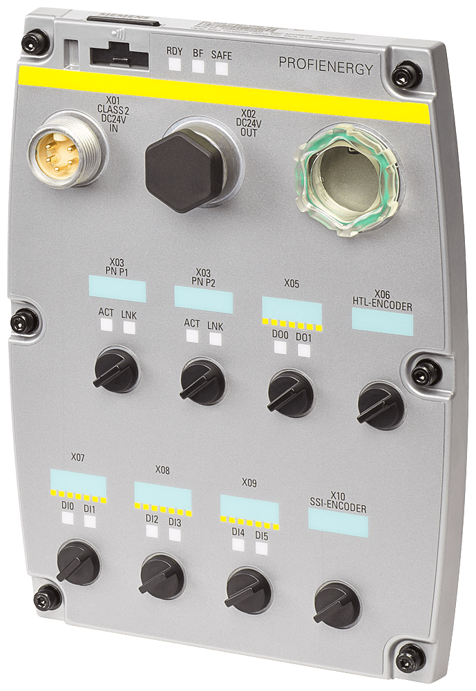 SINAMICS G120D Control Unit CU250D-2 PN-F PROFINET e Safety Integrated posizionabile (EPOS) 6 DI/3 F-DI, 2 DO/1 F-DO, 2 AI interfaccia USB interfaccia schede SD/MMC interfaccia encoder HTL e SSI grado di protezione IP65 temperatura ambiente -10 ... +50 °C senza Power Module Control Unit SINAMICS CU250D-2 per il convertitore decentrato SINAMICS G120D. La regolazione del convertitore avviene tramite la Control Unit. Oltre alla regolazione sono disponibili ulteriori funzioni che si possono adattare alle specifiche applicazioni con un'adeguata parametrizzazione. Con la Control Unit CU250D-2 si possono realizzare applicazioni con esigenze di posizionamento nell'azionamento. Questo ampliamento consente l'impiego in applicazioni di sollevamento, orientamento, spostamento o rotazione. La funzionalità di posizionamento è comparabile con i servo-convertitori SINAMICS S110. Rispettare le seguenti avvertenze: Da una parte sono possibili una regolazione vettoriale e una regolazione vettoriale senza encoder e dall'altra il posizionamento avviene tramite un encoder oppure in parallelo con due encoder. Le Control Unit sono disponibili in esecuzioni diverse, ovvero CU250D-2 DP-F, CU250D-2 PN-F, CU250D-2 PN-F PP (Push Pull: tecnica di collegamento alternativa dell'alimentazione DC 24 V e della comunicazione PN) e CU250D-2 PN-F FO (Fibre Optic). Il convertitore fail-safe SINAMICS G120D, con le varianti fail-safe della serie CU250D-2, offre cinque funzioni di sicurezza. Si tratta delle funzioni Coppia disinserita in sicurezza (STO) per la protezione contro un movimento dell'azionamento, Arresto sicuro 1 (SS1) per il monitoraggio continuo di una rampa di frenatura sicura, Velocità limitata sicura (SLS) per la protezione contro movimenti pericolosi dovuti al superamento di una velocità limite, Senso di rotazione sicuro (SDI) e Sorveglianza della velocità sicura (SSM). Per il funzionamento della Control Unit è necessaria un'alimentazione di energia esterna DC 24 V. SINAMICS - la famiglia di azionamenti omogenea per ogni campo d'impiego.