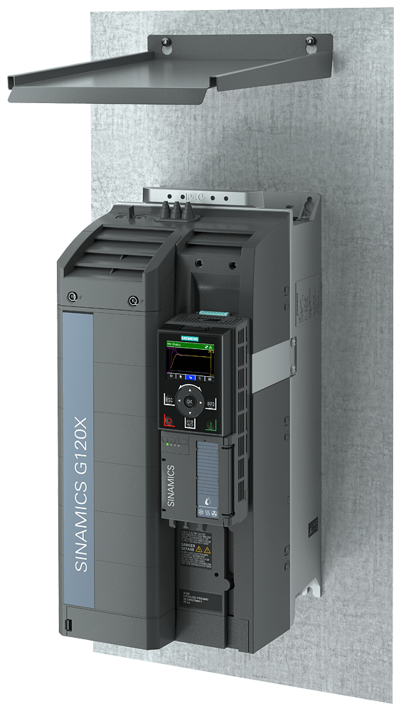 SINAMICS G120X copertura superiore IP21 per FSC eFSD Componenti di sistema aggiuntivi, IP21 Top Cover per il convertitore di frequenza SINAMICS G120X. Con l'IP21 Top Cover opzionale si raggiunge il grado di protezione IP21 per il convertitore SINAMICS G120X nelle grandezze costruttive da FSA a FSG che, con l'IP21 Top Cover opzionale, è adatto per l'impiego per l'impiego in locali tecnici con serratura, anche all'esterno di un quadro elettrico. Nel montaggio a parete l'IP21 Top Cover viene installato sopra il convertitore. SINAMICS - l'azionamento che fa per me.