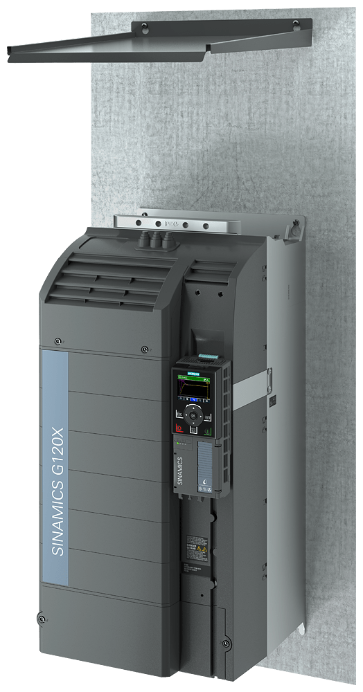 SINAMICS G120X IP21 Top Cover per FSF e FSG Componenti di sistema aggiuntivi, IP21 Top Cover per il convertitore di frequenza SINAMICS G120X. Con l'IP21 Top Cover opzionale si raggiunge il grado di protezione IP21 per il convertitore SINAMICS G120X nelle grandezze costruttive da FSA a FSG che, con l'IP21 Top Cover opzionale, è adatto per l'impiego per l'impiego in locali tecnici con serratura, anche all'esterno di un quadro elettrico. Nel montaggio a parete l'IP21 Top Cover viene installato sopra il convertitore. SINAMICS - l'azionamento che fa per me.