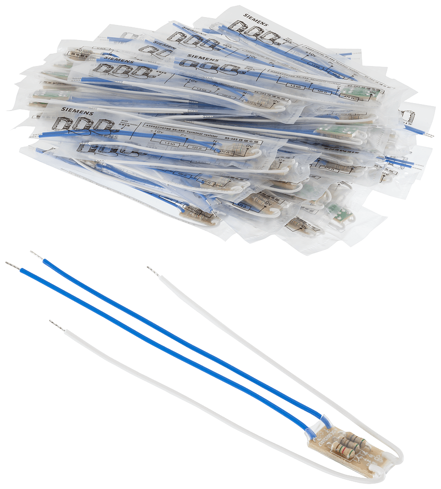 SINAMICS V20 connessione di bus RS485 contenuto 50 pezzi dimensioni: 34x137x6 (LxAxP) Resistenza terminale SINAMICS RS485 Resistenza terminale per SINAMICS V20. Per terminare il bus della comunicazione RS485 tra SINAMICS V20 e controllore SIEMENS si utilizza una resistenza terminale RS485. Si può ordinare in lotti di 50 pezzi. SINAMICS - l'azionamento che fa per me.