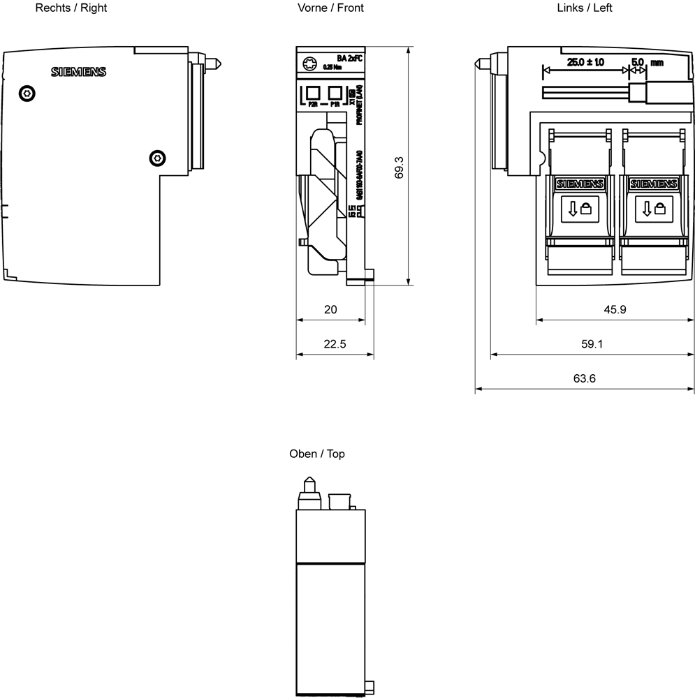 SIEMENS - SIPLUS ET 200SP BA 2 x FC -40 ... +70 °C con Conformal Coating based on 6ES7193-6AF00-0AA0 6AG11936AF007AA0