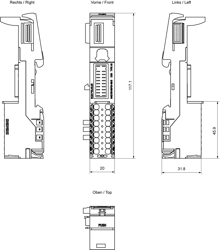 SIEMENS - SIPLUS ET 200SP BU tipo U0 BU20-P16+A0+2B TX RAIL