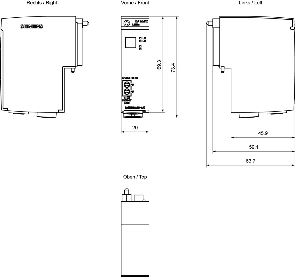 SIEMENS - SIPLUS ET 200SP BusAdapter BA 2x M12 RAIL con Conformal Coating based on 6ES7193-6AM00-0AA0