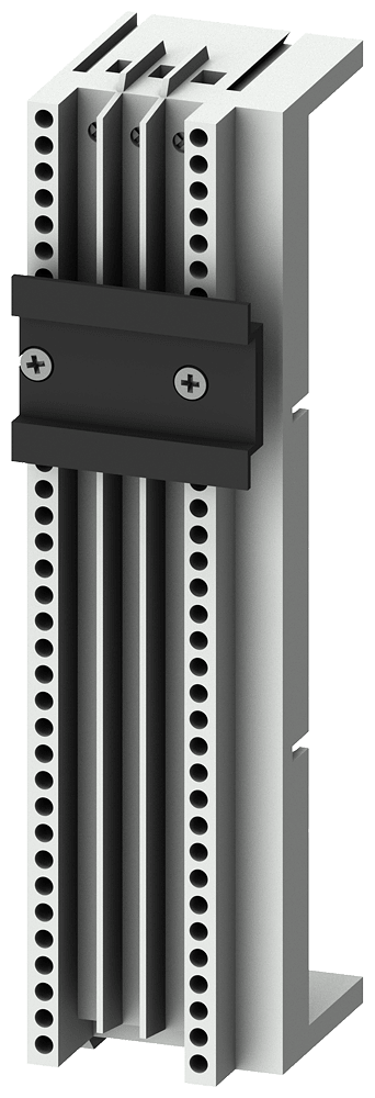 Sistema di sbarre collettrici interasse sbarre collettrici 60mm adattatore apparecchio, larghezza: 45mm spessore delle sbarre: 5,10 mm+profilato TT per qualsiasi tipo di equipaggiamento con 1 guida di supporto 35 mm,...25A morsetti di uscita in alto 1,5 ... 4 mm2 lunghezza 182 mm Sistema di sbarre collettrici 8US per il montaggio di apparecchi di protezione come sezionatori sottocarico a fusibili e interruttori automatici - sicuro, salvaspazio, con una struttura chiara. L'impiego dei sistemi di sbarre collettrici 8US di Siemens offre molteplici possibilità per l'installazione di apparecchi di collegamento, manovra e installazione adattabili a sbarre. La forma costruttiva modulare salvaspazio e il montaggio rapido con contattazione assicurano un equipaggiamento elettrotecnico economico nella costruzione degli odierni quadri di distribuzione. Il montaggio avviene su montanti, l'interasse delle sbarre ammonta a 60 mm. I sistemi di sbarre collettrici 8US di Siemens si contraddistinguono soprattutto per le seguenti caratteristiche: 1. Fissaggio meccanico e contattazione elettrica in una sola operazione. 2. Omologazione internazionale e quindi possibilità di impiego in tutto il mondo nel settore della costruzione di macchine e impianti. 3. Semplice intercambiabilità di singoli apparecchi ointere combinazioni. 4. Risparmio di montaggio e riduzione dei costi grazie a partenze motore già preassemblate. 5. Elevata sicurezza di funzionamento grazie alla copertura di protezione a prova di dito degli adattatori e dei supporti per apparecchi. 6. Ampia gamma di sbarre collettrici impiegabili per un semplice adattamento a correnti fino a 1.600 A.
