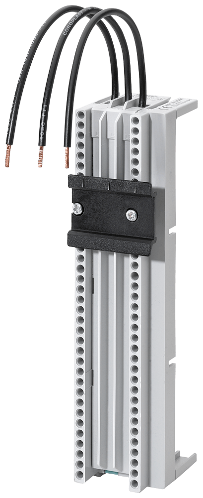 Sistema di sbarre collettrici interasse sbarre collettrici 60mm adattatore apparecchio, larghezza: 45mm spessore delle sbarre: 5,10 mm+profilato TT per apparecchi di manovra e partenze motore SIRIUS, S00 con 1 guida di supporto 35 mm, 12,5A con collegamento cage-clamp, cavo 2,5 mm2 lunghezza 182 mm Sistema di sbarre collettrici 8US per il montaggio di apparecchi di protezione come sezionatori sottocarico a fusibili e interruttori automatici - sicuro, salvaspazio, con una struttura chiara. L'impiego dei sistemi di sbarre collettrici 8US di Siemens offre molteplici possibilità per l'installazione di apparecchi di collegamento, manovra e installazione adattabili a sbarre. La forma costruttiva modulare salvaspazio e il montaggio rapido con contattazione assicurano un equipaggiamento elettrotecnico economico nella costruzione degli odierni quadri di distribuzione. Il montaggio avviene su montanti, l'interasse delle sbarre ammonta a 60 mm. I sistemi di sbarre collettrici 8US di Siemens si contraddistinguono soprattutto per le seguenti caratteristiche: 1. Fissaggio meccanico e contattazione elettrica in una sola operazione. 2. Omologazione internazionale e quindi possibilità di impiego in tutto il mondo nel settore della costruzione di macchine e impianti. 3. Semplice intercambiabilità di singoli apparecchi ointere combinazioni. 4. Risparmio di montaggio e riduzione dei costi grazie a partenze motore già preassemblate. 5. Elevata sicurezza di funzionamento grazie alla copertura di protezione a prova di dito degli adattatori e dei supporti per apparecchi. 6. Ampia gamma di sbarre collettrici impiegabili per un semplice adattamento a correnti fino a 1.600 A.