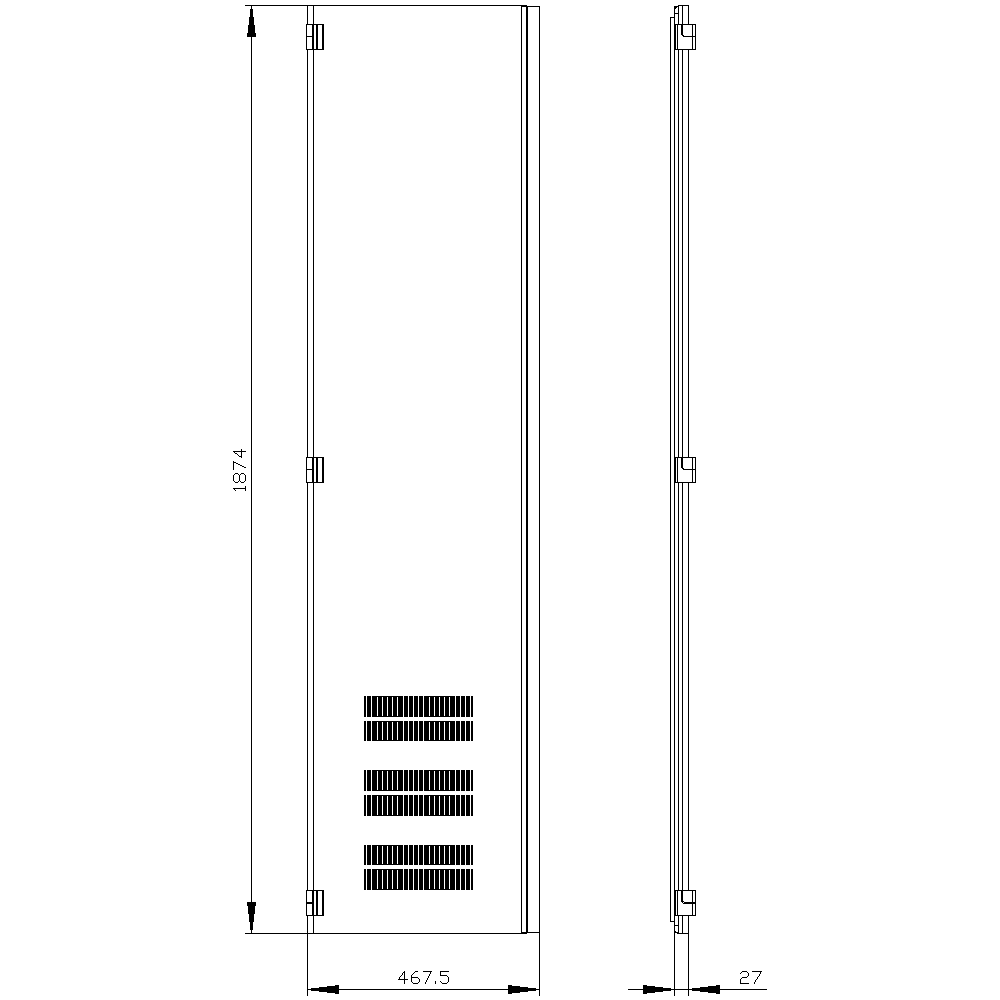 SIEMENS - SIVACON, anta della porta, a sinistra, con alette di ventilazione, IP40, A: 2000 mm, La: 450 mm 8MF10702UT252BA2