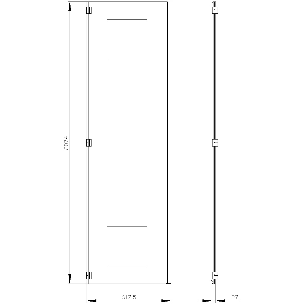 SIVACON, anta della porta, a sinistra, con sfinestratura per ventilatore con filtro