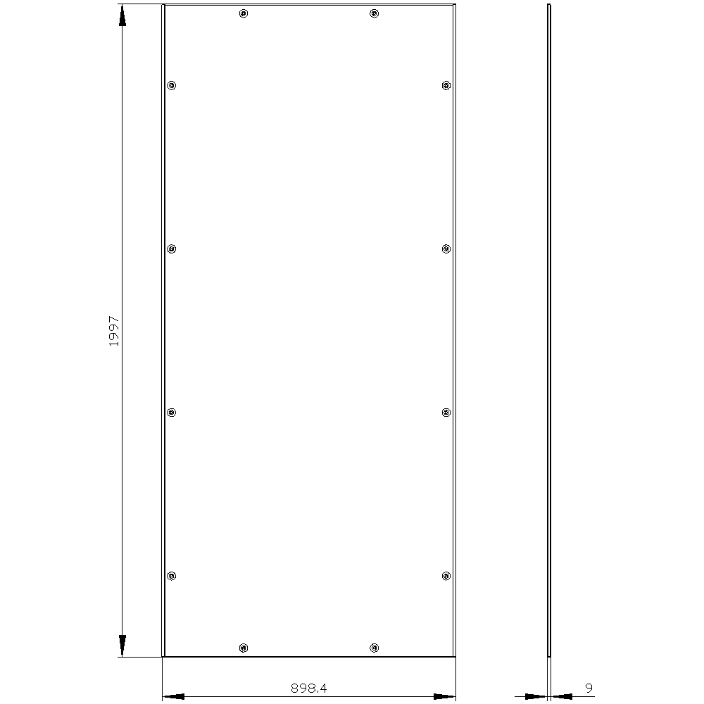 SIEMENS - SIVACON parete laterale/posteriore, chiusa, IP40, A: 2000 mm, La: 900 mm, RAL 7035