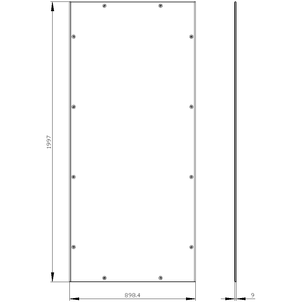 SIEMENS - SIVACON parete laterale/posteriore, chiusa, IP55, A: 2000 mm, La: 900 mm, RAL 7035
