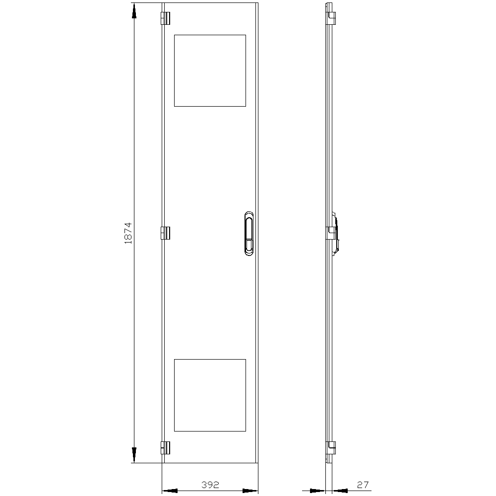 SIEMENS - SIVACON, porta, a sinistra, con sfinestratura per ventilatore con filtro, con alette di ventilazione 8MF10402UT153BA2
