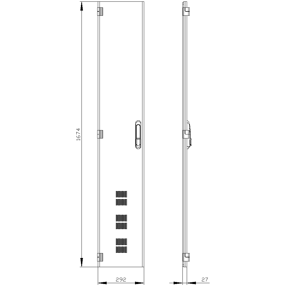 SIEMENS - SIVACON, porta, a sinistra, ventilato, IP40, A: 1800 mm, La: 300 mm, RAL 7035 8MF18302UT152BA2