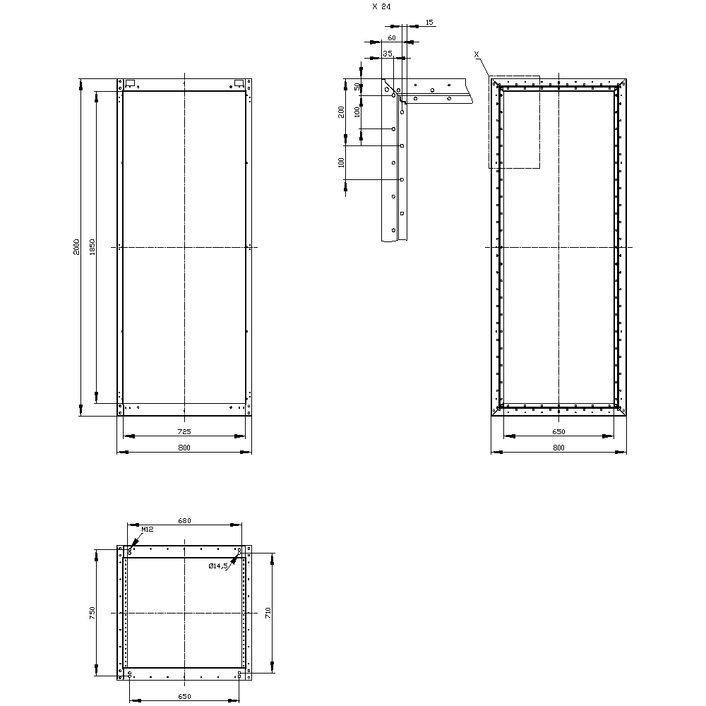 SIEMENS - SIVACON, struttura per involucro vuoto standard, A: 2000 mm, La: 800 mm, P: 800 mm 8MF10882GS30