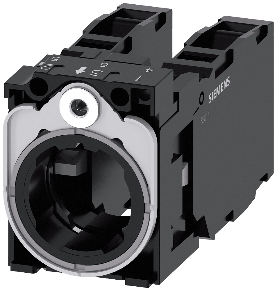 supporto, universale, per 3 moduli, in plastica/metallo, 1 NO+1 NC, 1 NO+1 NC, attacco a vite Supporto SIRIUS ACT per il fissaggio di pulsanti/selettori e indicatori modulari. Standard: supporto 3x, supporto 4x solo in combinazione con manipolatore joystick/selettore a 4 posizioni. Siemens offre, sotto il nome commerciale SIRIUS ACT, un portfolio esclusivo di dispositivi di comando e segnalazione con omologazioni di prodotto per il mercato mondiale in tre moderne serie di design in robusto metallo puro e plastica pregiata.L'innovativo concetto di innesto a scatto semplifica talmente il montaggio che per eseguirlo basta una sola mano e non servono attrezzi speciali. Per i fori di montaggio sono sufficienti semplici fori non scanalati, essendo già integrata una protezione antirotazione al 100 %.Grazie al grado di protezione elevato i robusti apparecchi sono adatti all'impiego industriale e in ambiente esterno. È persino possibile la pulizia con getto ad alta pressione. Né polvere, né oli, né liscivia possono comprometterne il funzionamento affidabile.Oltre che con il cablaggio standard, gli apparecchi possono essere collegati al controllore anche tramite PROFINET, AS-Interface oppure IO-Link. Potete così ridurre il vostro onere di cablaggio, minimizzare le fonti di errore e ottenere maggiore flessibilità.Il configuratore online grafico supporta in modo confortevole la scelta e l'ordinazione di singoli apparecchi, pulsantiere e iscrizioni. È disponibile una documentazione completa (ad es. manuale, dati 3D, schema di collegamento). Esecuzioni fornibili: plastica/metallo, con/senza moduli. SIRIUS ACT - Performance in Action nel comando e nella segnalazione. Semplici da montare, altamente performanti, semplicemente perfetti.