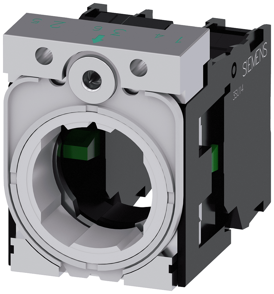 supporto, per 3 moduli, metallo, 1 NO, 1 NO, morsetti a vite Supporto SIRIUS ACT per il fissaggio di pulsanti/selettori e indicatori modulari. Standard: supporto 3x, supporto 4x solo in combinazione con manipolatore joystick/selettore a 4 posizioni. Siemens offre, sotto il nome commerciale SIRIUS ACT, un portfolio esclusivo di dispositivi di comando e segnalazione con omologazioni di prodotto per il mercato mondiale in tre moderne serie di design in robusto metallo puro e plastica pregiata.L'innovativo concetto di innesto a scatto semplifica talmente il montaggio che per eseguirlo basta una sola mano e non servono attrezzi speciali. Per i fori di montaggio sono sufficienti semplici fori non scanalati, essendo già integrata una protezione antirotazione al 100 %.Grazie al grado di protezione elevato i robusti apparecchi sono adatti all'impiego industriale e in ambiente esterno. È persino possibile la pulizia con getto ad alta pressione. Né polvere, né oli, né liscivia possono comprometterne il funzionamento affidabile.Oltre che con il cablaggio standard, gli apparecchi possono essere collegati al controllore anche tramite PROFINET, AS-Interface oppure IO-Link. Potete così ridurre il vostro onere di cablaggio, minimizzare le fonti di errore e ottenere maggiore flessibilità.Il configuratore online grafico supporta in modo confortevole la scelta e l'ordinazione di singoli apparecchi, pulsantiere e iscrizioni. È disponibile una documentazione completa (ad es. manuale, dati 3D, schema di collegamento). Esecuzioni fornibili: plastica/metallo, con/senza moduli. SIRIUS ACT - Performance in Action nel comando e nella segnalazione. Semplici da montare, altamente performanti, semplicemente perfetti.
