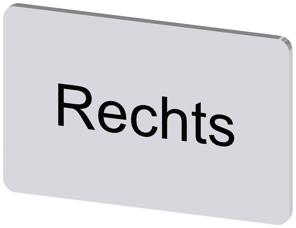 targhetta identificativa per fissaggio a scatto o incollaggio, su portatarghetta, grandezza della targhetta 17,5 x 27 mm, targhetta argento, caratteri neri, con iscrizione: Rechts Targhetta identificativa per la siglatura dei dispositivi di comando e segnalazione SIRIUS ACT. Siemens offre, sotto il nome commerciale SIRIUS ACT, un portfolio esclusivo di dispositivi di comando e segnalazione con omologazioni di prodotto per il mercato mondiale in tre moderne serie di design in robusto metallo puro e plastica pregiata.L'innovativo concetto di innesto a scatto semplifica talmente il montaggio che per eseguirlo basta una sola mano e non servono attrezzi speciali. Per i fori di montaggio sono sufficienti semplici fori non scanalati, essendo già integrata una protezione antirotazione al 100 %.Grazie al grado di protezione elevato i robusti apparecchi sono adatti all'impiego industriale e in ambiente esterno. È persino possibile la pulizia con getto ad alta pressione. Né polvere, né oli, né liscivia possono comprometterne il funzionamento affidabile.Oltre che con il cablaggio standard, gli apparecchi possono essere collegati al controllore anche tramite PROFINET, AS-Interface oppure IO-Link. Potete così ridurre il vostro onere di cablaggio, minimizzare le fonti di errore e ottenere maggiore flessibilità.Il configuratore online grafico supporta in modo confortevole la scelta e l'ordinazione di singoli apparecchi, pulsantiere e iscrizioni. È disponibile una documentazione completa (ad es. manuale, dati 3D, schema di collegamento). Ampia gamma di accessori opzionali (ad es. targhette identificative, per protezione e accesso, operatori, accessori per pulsantiere). SIRIUS ACT - Performance in Action nel comando e nella segnalazione. Semplici da montare, altamente performanti, semplicemente perfetti.