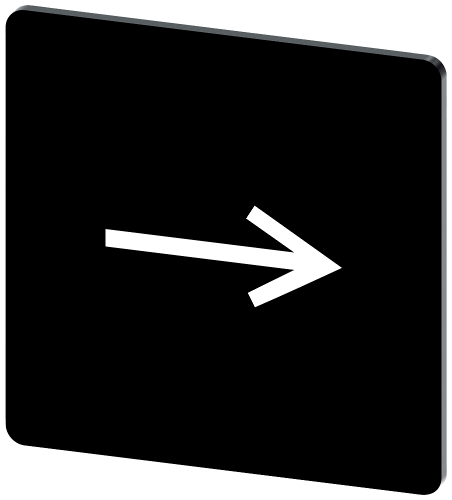 targhetta identificativa per fissaggio a scatto o incollaggio su portatarghetta grandezza della targhetta 27x27 mm, targhetta nera, caratteri bianchi, con simbolo grafico direzione freccia a destra Targhetta identificativa per la siglatura dei dispositivi di comando e segnalazione SIRIUS ACT. Siemens offre, sotto il nome commerciale SIRIUS ACT, un portfolio esclusivo di dispositivi di comando e segnalazione con omologazioni di prodotto per il mercato mondiale in tre moderne serie di design in robusto metallo puro e plastica pregiata.L'innovativo concetto di innesto a scatto semplifica talmente il montaggio che per eseguirlo basta una sola mano e non servono attrezzi speciali. Per i fori di montaggio sono sufficienti semplici fori non scanalati, essendo già integrata una protezione antirotazione al 100 %.Grazie al grado di protezione elevato i robusti apparecchi sono adatti all'impiego industriale e in ambiente esterno. È persino possibile la pulizia con getto ad alta pressione. Né polvere, né oli, né liscivia possono comprometterne il funzionamento affidabile.Oltre che con il cablaggio standard, gli apparecchi possono essere collegati al controllore anche tramite PROFINET, AS-Interface oppure IO-Link. Potete così ridurre il vostro onere di cablaggio, minimizzare le fonti di errore e ottenere maggiore flessibilità.Il configuratore online grafico supporta in modo confortevole la scelta e l'ordinazione di singoli apparecchi, pulsantiere e iscrizioni. È disponibile una documentazione completa (ad es. manuale, dati 3D, schema di collegamento). Ampia gamma di accessori opzionali (ad es. targhette identificative, per protezione e accesso, operatori, accessori per pulsantiere). SIRIUS ACT - Performance in Action nel comando e nella segnalazione. Semplici da montare, altamente performanti, semplicemente perfetti.