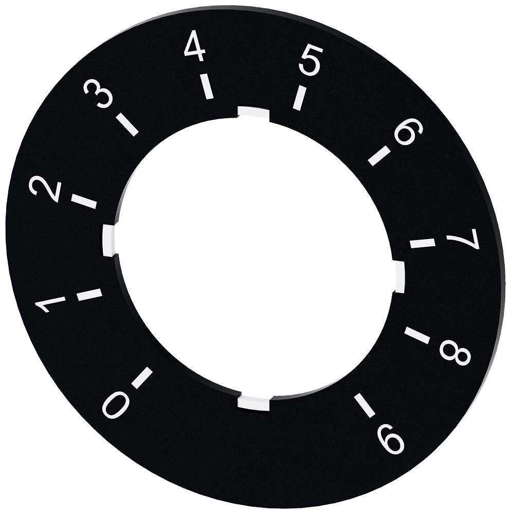 targhetta identificativa per potenziometro, targhetta nera, iscrizione bianca, con iscrizione: 0...9 diametro esterno 40 mm Targhetta identificativa per la siglatura dei dispositivi di comando e segnalazione SIRIUS ACT. Siemens offre, sotto il nome commerciale SIRIUS ACT, un portfolio esclusivo di dispositivi di comando e segnalazione con omologazioni di prodotto per il mercato mondiale in tre moderne serie di design in robusto metallo puro e plastica pregiata.L'innovativo concetto di innesto a scatto semplifica talmente il montaggio che per eseguirlo basta una sola mano e non servono attrezzi speciali. Per i fori di montaggio sono sufficienti semplici fori non scanalati, essendo già integrata una protezione antirotazione al 100 %.Grazie al grado di protezione elevato i robusti apparecchi sono adatti all'impiego industriale e in ambiente esterno. È persino possibile la pulizia con getto ad alta pressione. Né polvere, né oli, né liscivia possono comprometterne il funzionamento affidabile.Oltre che con il cablaggio standard, gli apparecchi possono essere collegati al controllore anche tramite PROFINET, AS-Interface oppure IO-Link. Potete così ridurre il vostro onere di cablaggio, minimizzare le fonti di errore e ottenere maggiore flessibilità.Il configuratore online grafico supporta in modo confortevole la scelta e l'ordinazione di singoli apparecchi, pulsantiere e iscrizioni. È disponibile una documentazione completa (ad es. manuale, dati 3D, schema di collegamento). Ampia gamma di accessori opzionali (ad es. targhette identificative, per protezione e accesso, operatori, accessori per pulsantiere). SIRIUS ACT - Performance in Action nel comando e nella segnalazione. Semplici da montare, altamente performanti, semplicemente perfetti.