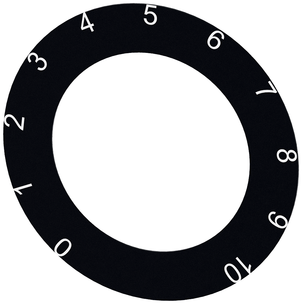 SIEMENS - targhetta identificativa per potenziometro, targhetta nera, iscrizione bianca, con iscrizione: 0...10, diametro esterno 33,5 mm 3SU19000BV160SA0