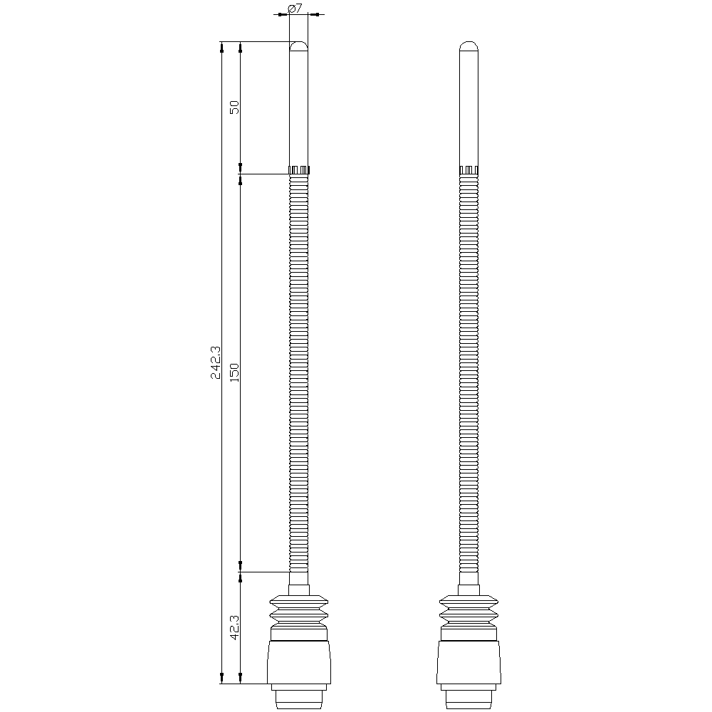 testina di comando: asta flessibile per interruttori di posizione 3SE51/52, solo con contatto a scatto rapido, lunghezza totale 242,5 mm, molla = 150 mm, perno = 50 mm in plastica meccanismo di avanzamento per interruttore di posizionamento SIRIUS 3SE5 per il rilevamento di posizione di parti di macchina e per la sorveglianza della posizione di dispositivi di protezione. La struttura modulare degli interruttori di posizione 3SE5 consente una molteplicità di varianti con un numero ridotto di tipi da magazzino. L'ampia varietà di connettori e rotelle consente di soddisfare tutte le esigenze nella quotidianità industriale. LED segnalano lo stato attuale dell'apparecchio. Grazie alla tecnica di collegamento rapida i tempi di cablaggio risultano notevolmente ridotti. Punti di commutazione e fissaggio secondo EN 50047 e EN 50041. Gli apparecchi hanno omologazioni internazionali (IEC, UL). Con le corrispondenti configurazioni di interruttore si possono soddisfare i massimi requisiti di sicurezza secondo PL e o SIL 3. L'elettronica ASIsafe integrata comporta un ridotto assorbimento di corrente. Sono disponibili diverse grandezze di custodia, con diversi contatti, in plastica o in metallo o informa costruttiva compatta. Alcune varianti sono disponibili opzionalmente con visualizzazione di stato a LED e connettore M12. La serie 3SF1 con collegamento diretto al sistema di bus AS-Interface completa la gamma di prodotti. Come accessori sono disponibili, a seconda dell'esecuzione, testine di comando e connettori nonché ulteriori accessori di montaggio/collegamento. Safety is a SIRIUS business.