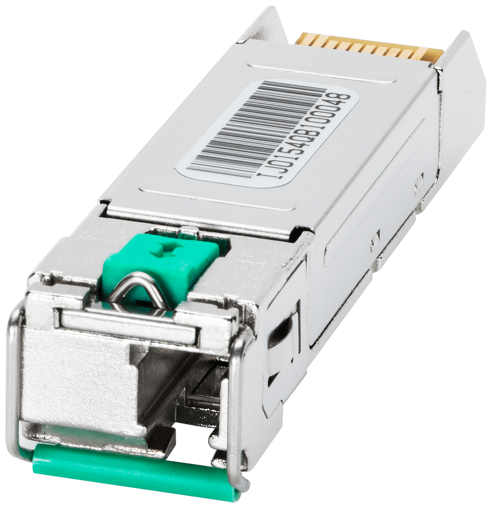 accessori SCALANCE X; transceiver a innesto SFP992-1BXMT; 1x porta LC da 1000 Mbit/s, ottica; Multimode vetro fino a max. 500 m BiDi Transceive 1550 Nm/1310 Nm. I transceiver ad innesto offrono la possibilità di equipaggiare con flessibilità gli switch Industrial Ethernet modulari di Layer 2 e Layer 3 per collegamenti ottici. Con un campo di temperatura di esercizio da -40 °C a +85 °C i transceiver ad innesto risultano particolarmente adatti all'impiego in ambienti gravosi. Risparmio di costi grazie al sistema modulare. La struttura delle reti Industrial Ethernet elettriche e ottiche nonché la topologia di rete e il tipo di porta sono facilmente adattabili con il sistema modulare alla struttura dell'impianto e ampliabili in ogni momento. Rete industriale omogenea per dati, voce e video. Performance elevata grazie a porte Gigabit.