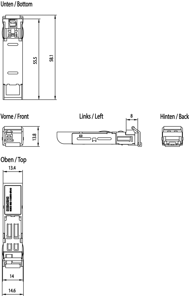 SIEMENS - Transceiver ad innesto SFP992-1BX10R, 1x LC da 1000 Mbit/s, singlemode in vetro, max. 10 km 6GK59921AM008RA0
