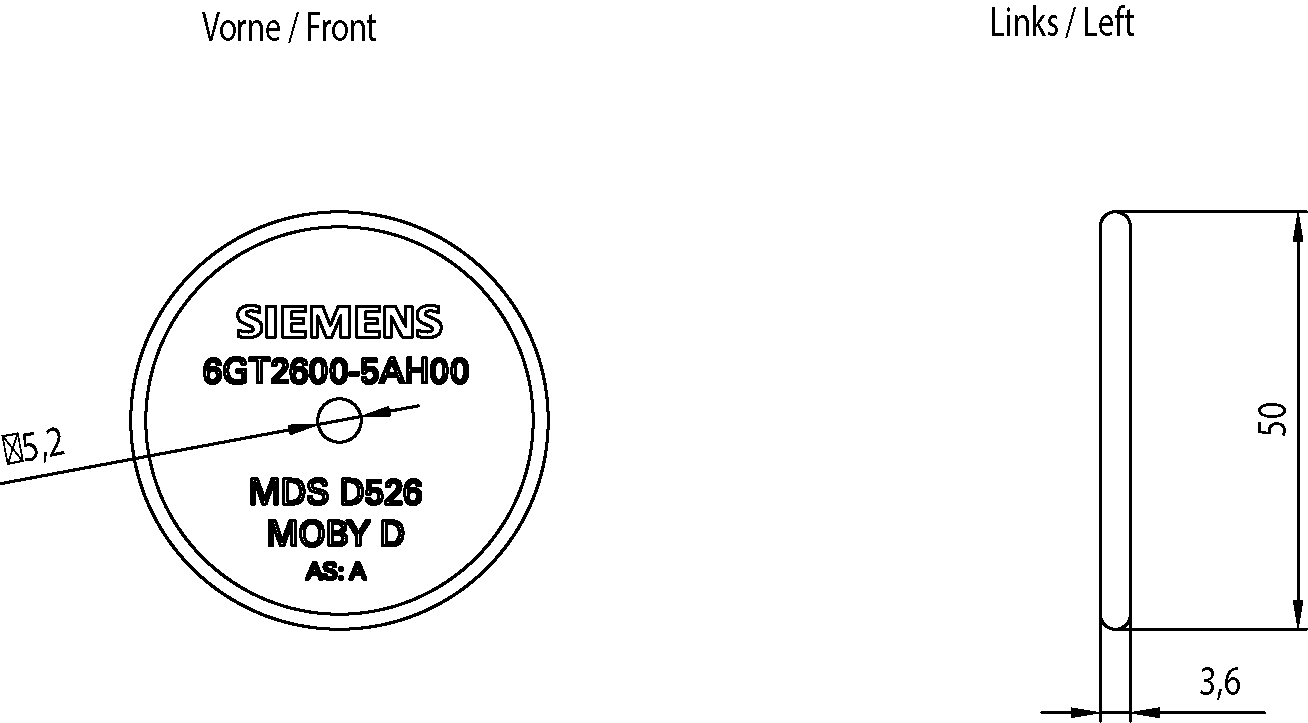 SIEMENS - Transponder MDS D526, disco, RF200/RF300 Gen2, ISO 15693, 8192 byte FRAM 6GT26005AH00