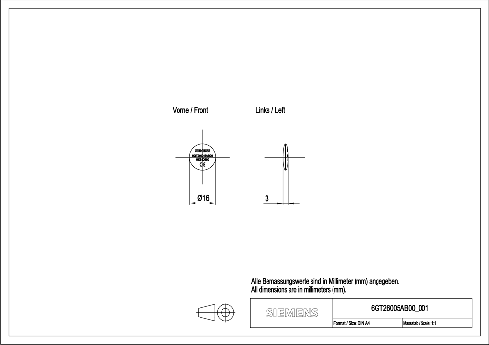 transponder MDS D560 per RF200/RF300 Gen2 pastiglia ISO Fujitsu MB89R112, memoria utente 8192 byte FRAM 16x 3mm (DxA); min. quantità ordinabile 50 pezzi. SIMATIC RFTransponder MDS D560