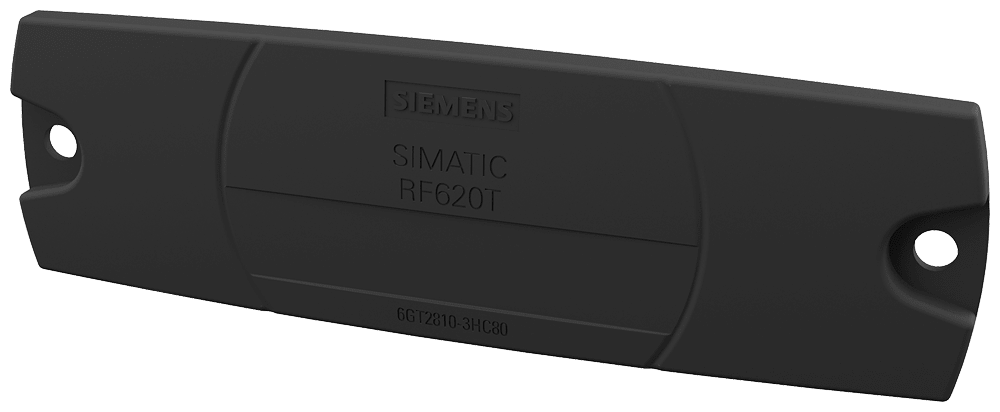 SIMATIC RF620T 127x 38x 6 mm (LxLaxA) ISO 18000-6C frequenza 860 ... 928 MHz NXP Ucode 7xm-2K EPC ID 56 byte/448 bit memoria utente 256 byte/2048 bit su metallo con distanziatore possibilità di scrittura a laser -40°C ... +85°C IP67 portata 5m 20 pezzi/confezione 20 pezzi MOQ Transponder RF620T